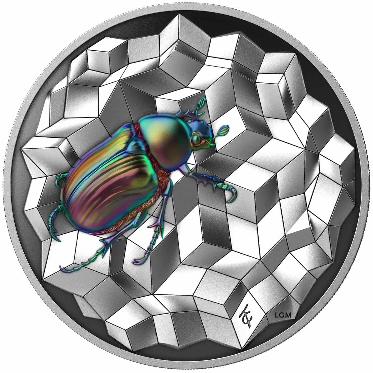 Le Grand Mint (LGM) continues to bring its eclectic mix of nature and geometry to coins with the third in their impressive Èntoma series of silver coins. This series first debuted in 2023, with the bee as its theme, followed in 2024 with a pretty Ladybird (or Ladybug, depending on where you are). Each coin takes an insect, and combines it with a geometric patterned background element, not a simple repeating pattern, but a crafted one with its own form.