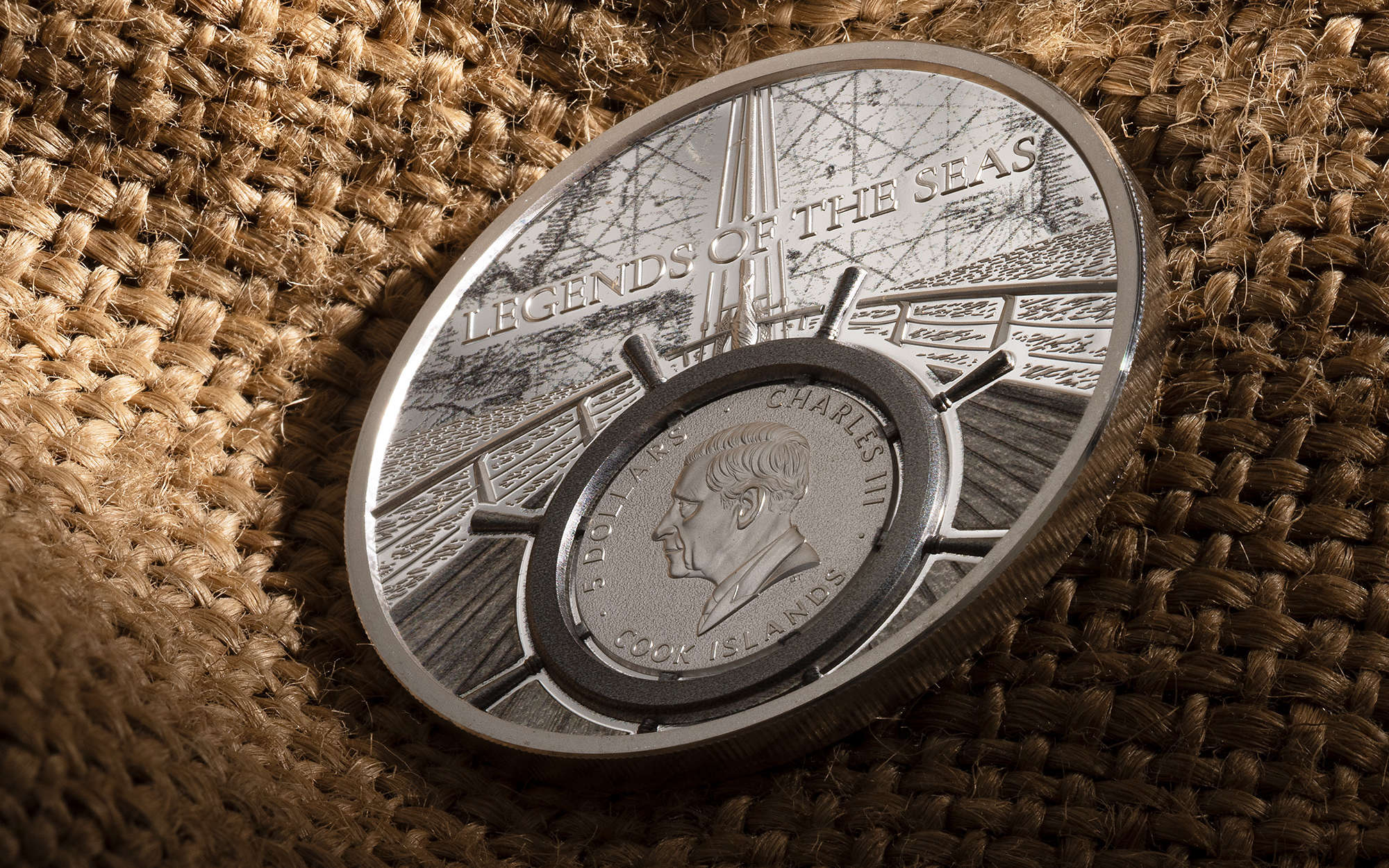 If you want to show black on a coin, there are few better ways to do it than using CIT’s Obsidian Black colouring, which creates an intense contrast with silver, or in this case, white. Here, there’s a high-relief portrait of this incredible hunter, using a monochrome palette. It’s as simple as that, and that’s all it needs. The result is striking.