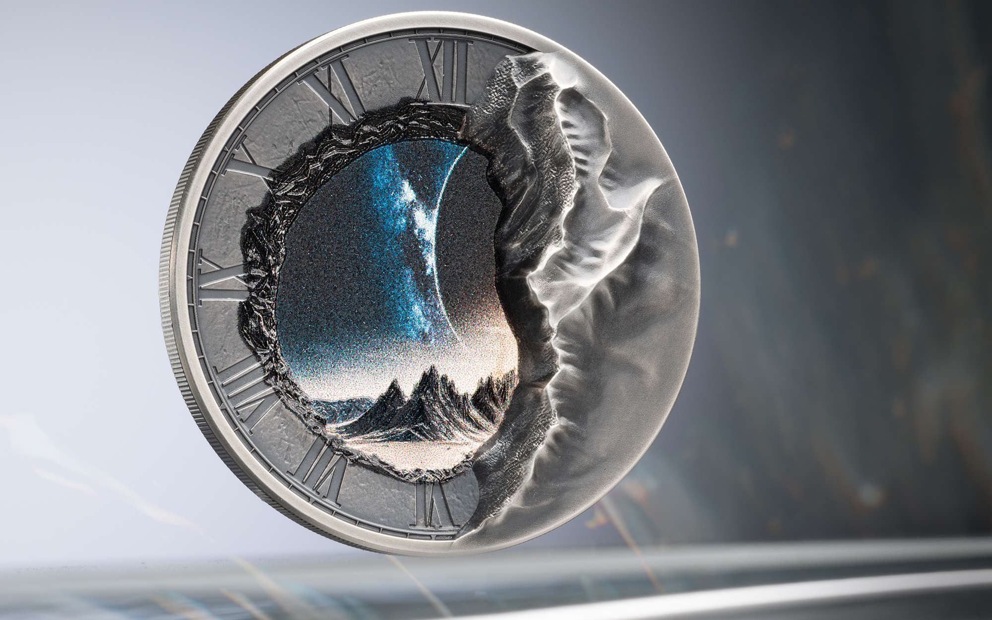 Finally, we have a coin that brings with it thoughts of infinite possibilities. Portal of Time shows us a gateway into the past, and perhaps even the future. The portal is shown carved in rock, a window to another world beyond. It brings to mind that amazing episode of the original 60s Star Trek, “The City on the Edge of Forever”, where they travel to Earth’s past through a sentient time portal called the Guardian of Forever.