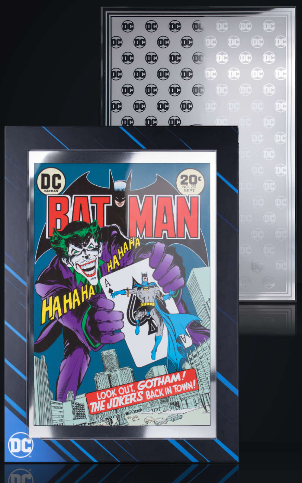 Parthava Coin’s five-issue series of one-ounce silver foils, has sadly come to an end with the launch of the fifth. Called DC Comics Iconic Covers, they reproduce some of the finest covers in DC Comic’s vast history of them. Apart from a solitary Superman design, the series has concentrated on Batman, and that continues for this final foil.