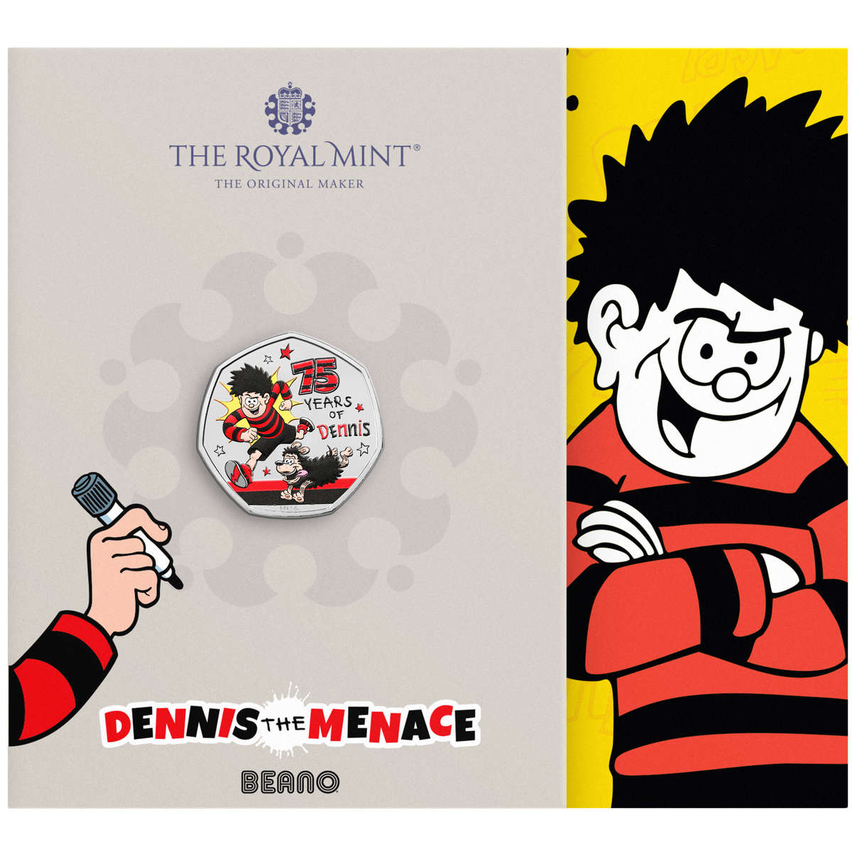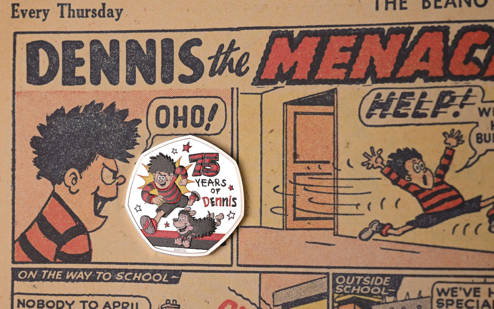 We wouldn’t normally cover two fifty pence coins from The Royal Mint so close together, but this one snuck up on us just a few days after we covered the new Winnie-the-Pooh release, and the truth is, these 50p issues remain very popular with collectors in the UK, and abroad. It also helps that Dennis the Menace, whose 75th anniversary is the subject of it, is such an unusual icon.