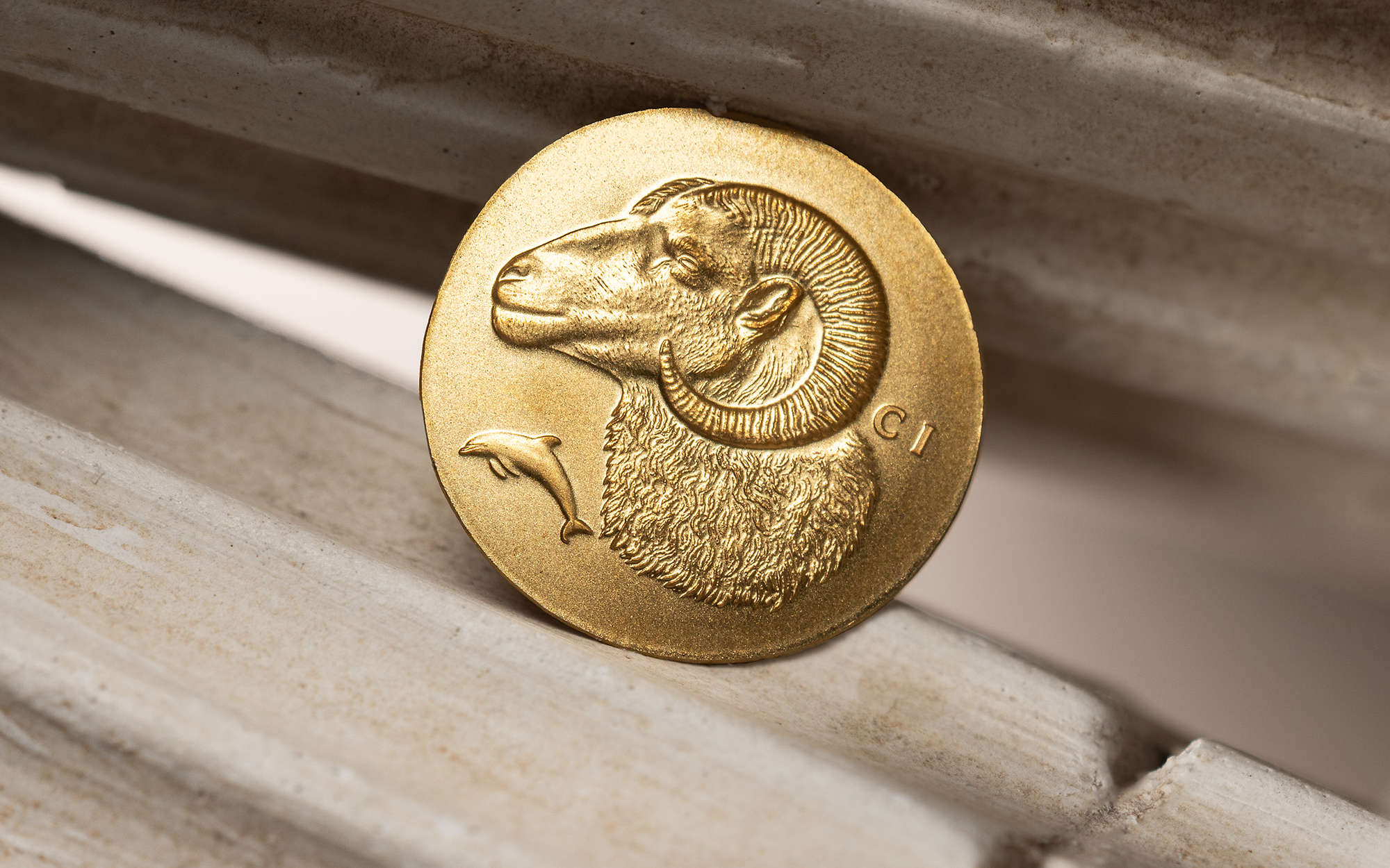 This final time we’re off to Delphi, home to the famous Oracle that was said to advise Greek leaders on future events. Delphi was home to the Temple of Apollo, where the Pythia (priestess) made her prophecies. It was known as the navel of the world, which marked the place where Zeus’s eagles met. The coin that inspired this release, a Trihemiobol, was struck around 500 BCE, and ranged around 1.5 grams in weight. The ram was a favoured sacrificial animal to the gods, and could be pictured facing left or right, and was usually flanked by one or two dolphins.