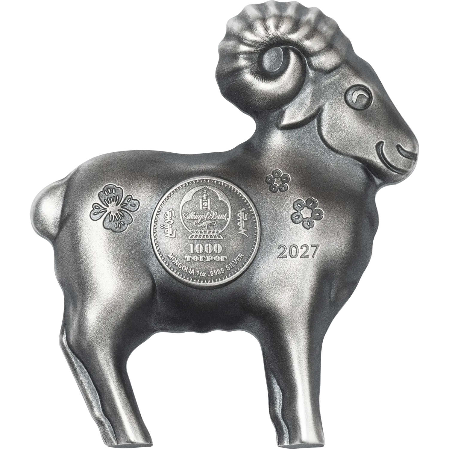 | 1,000 Tögrög (Mongolia) | 31.1 g of 0.9999 silver | Circa 37 mm | Antique | 999 |