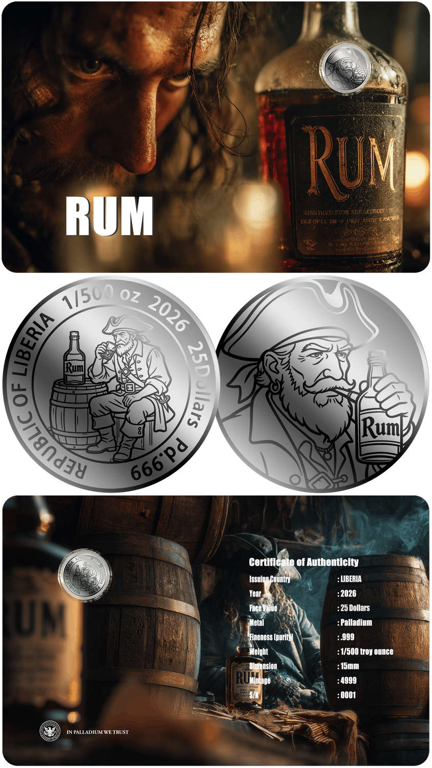 Enter Silver Pours, who have embraced these formats, in gold, silver, platinum, and unusually, the subject of this profile, palladium, to produce a huge range targeted directly at the collector. These are not for the investor for obvious reasons, but they make a neat way to get into collecting. The subject range is huge, and the current release schedule extremely rapid. Each comes mounted in a themed credit-card style blister, complete with a COA on the back.