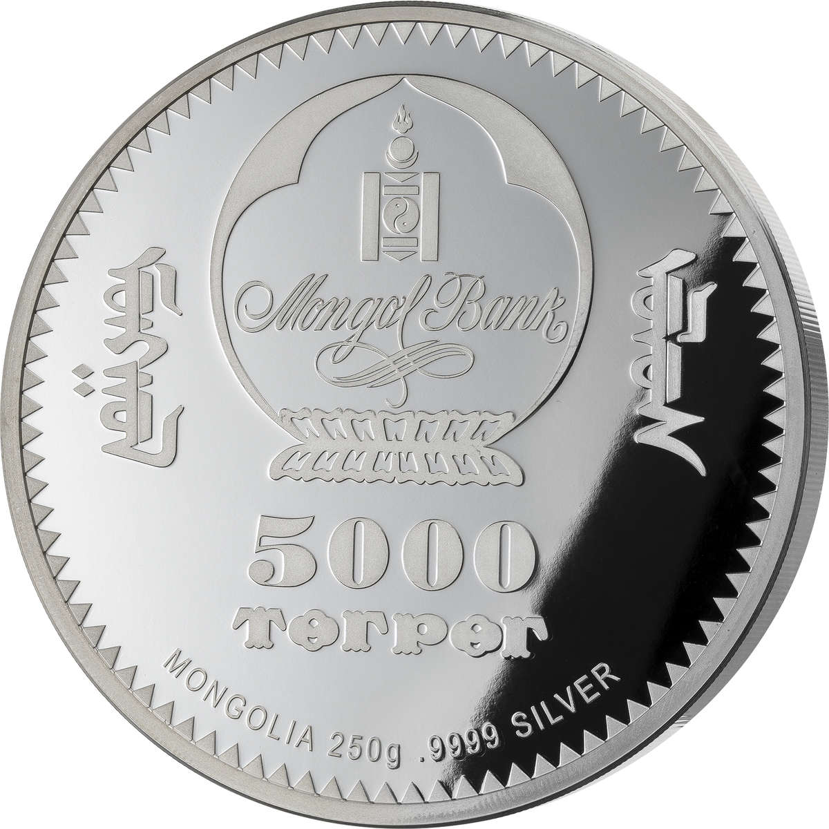 | 5,000 Tögrög (Mongolia) | 250.0 g of 0.9999 silver | 65.0 mm | Proof | 250 |