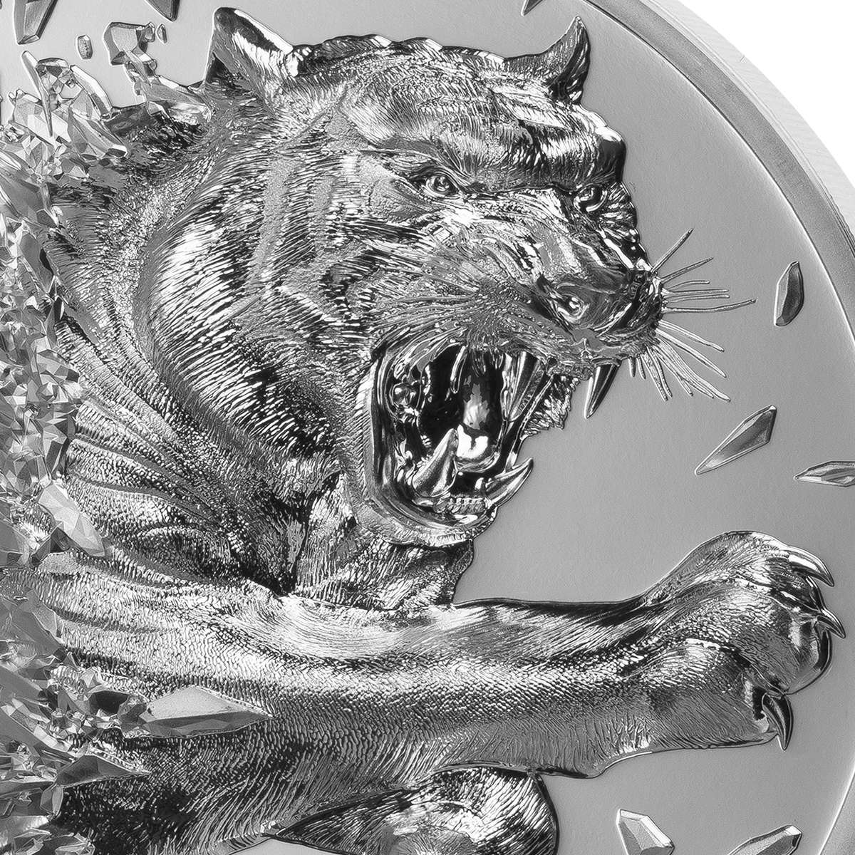 Silver Burst has been a three-ounce silver coin series that debuted in 2021, and CIT have issued five of them to date. AllCollect’s first issue in this style is an all-new design, and I have to say, is the best yet. The dynamics of the tiger bursting through the shards is off-the-charts gorgeous, with the depiction of the animal just about perfect. The shards, which have overpowered a couple of the earlier designs, are a little more restrained here, and that works in the design’s favour. The comparatively shard-free right side is the perfect counterbalance, reinforcing the idea that the tiger is jumping between spaces. By comparison, the obverse is a simple unthemed one, but of note is the issuance for Mongolia, rather than the Cook Islands, which has been the case for the earlier three-ounce coins (we don’t expect those to change).