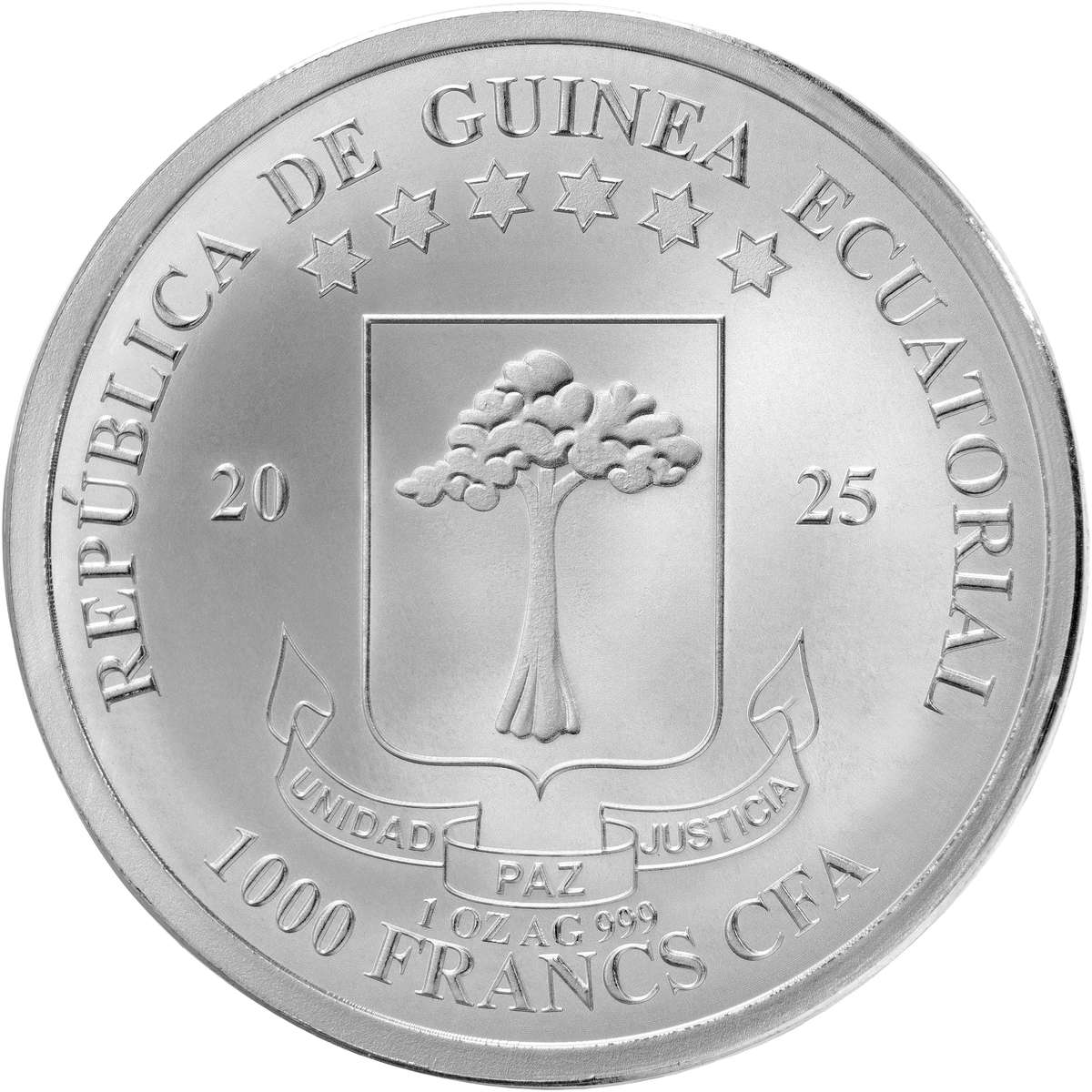| 1,000 Francs CFA (Equatorial Guinea) | 31.1 g of 0.999 silver | 40.0 mm | BU, Gilding, Colour | 750 |