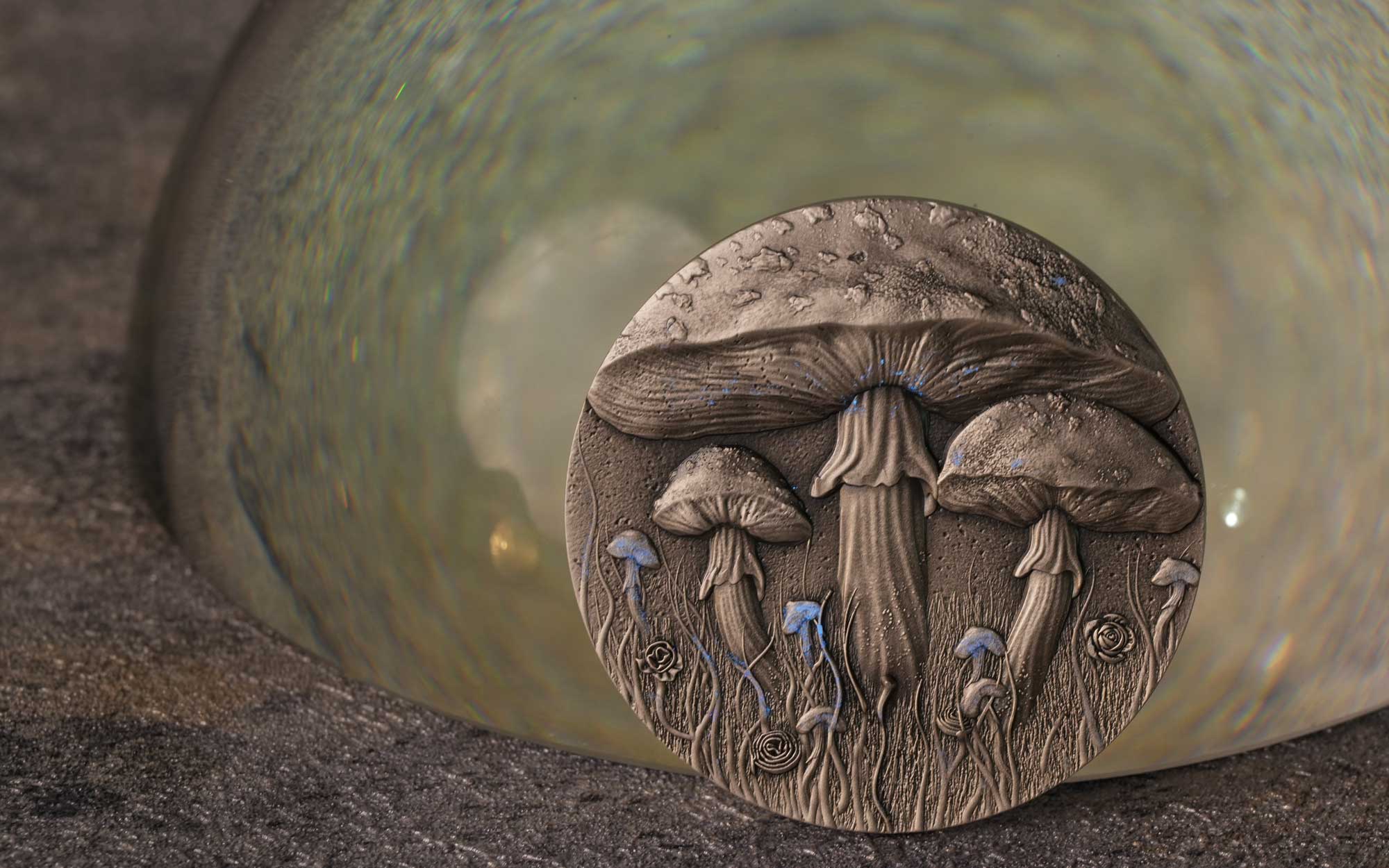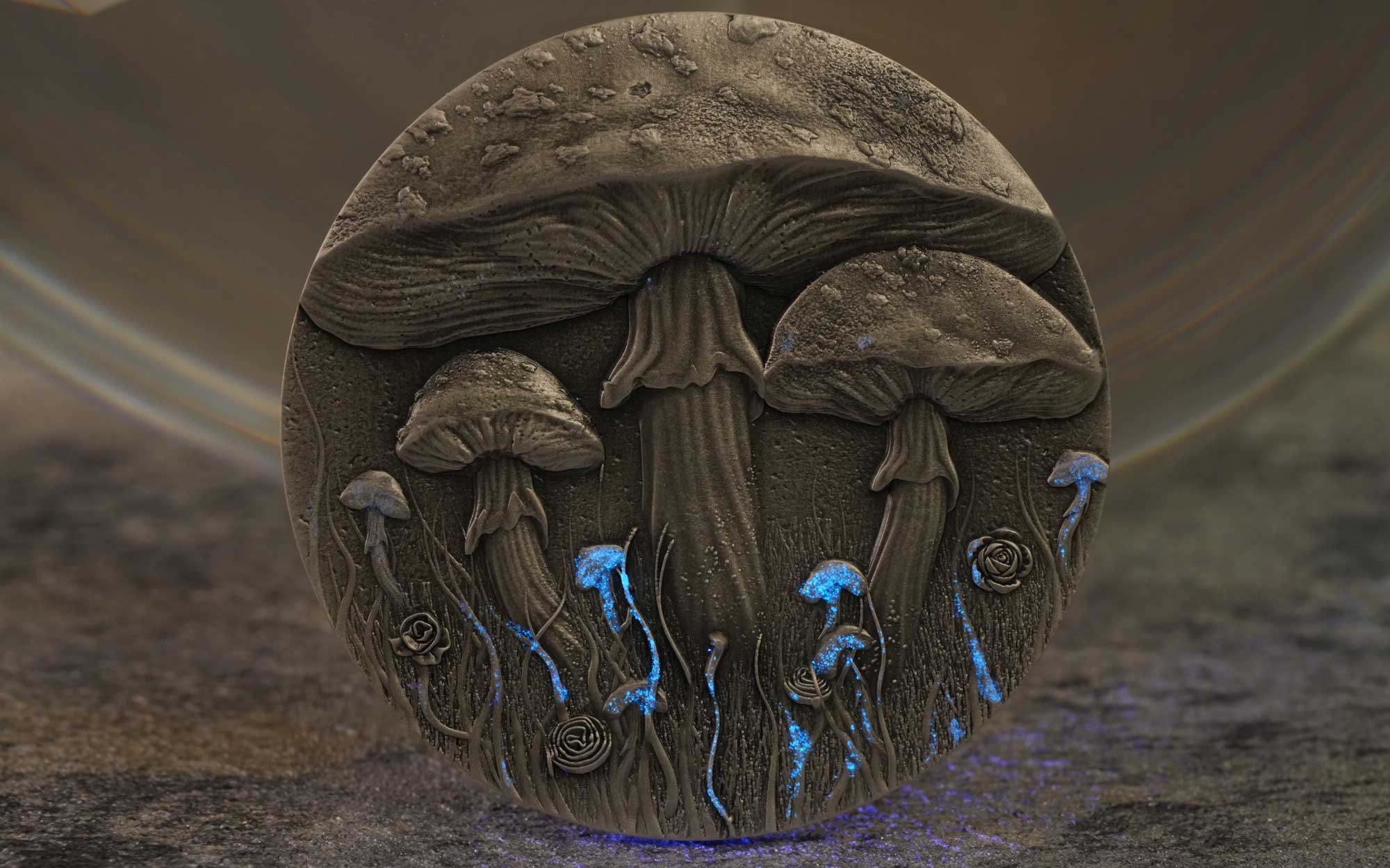 You don’t have to take magic mushrooms to see the ones on Mint of MKs latest silver coin issue glow when the lights go out…
